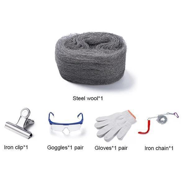 1 ролка стоманена вата, бъркалка, малко гъвкава тел и клещи, запалка или кибритени клечки