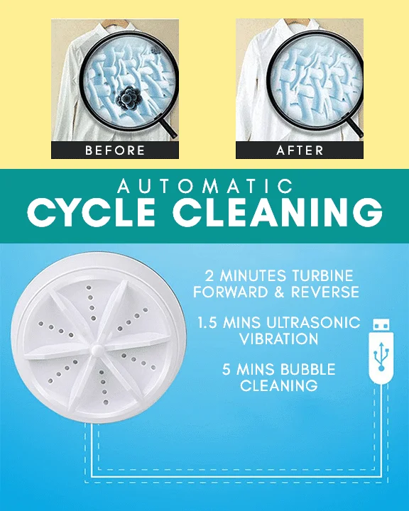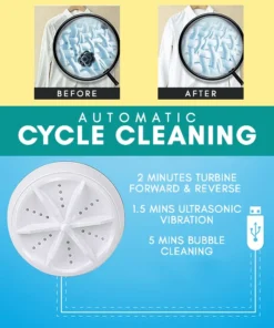 - ПРОДУКТЪТ ВКЛЮЧВА: 1бр x Преносима ултразвукова пералня