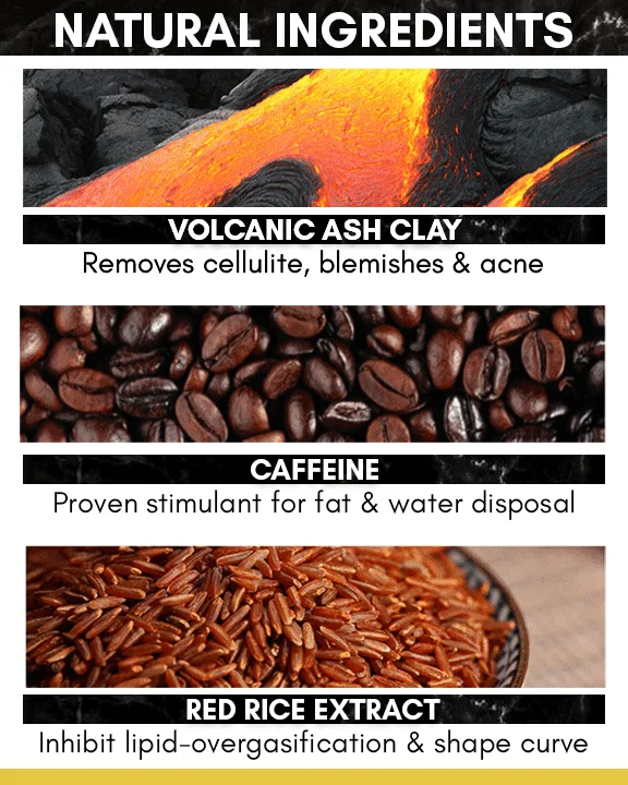- Състав: вулканична глина, кофеин, глицерин, зехтин