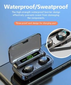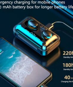 Характеристика: Автоматично сдвояване + сензорно управление, Bluetooth 5.0 + 2200 mAh калъф за зареждане, HIFI стерео +IPX7 водоустойчив